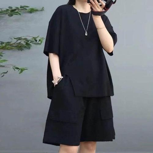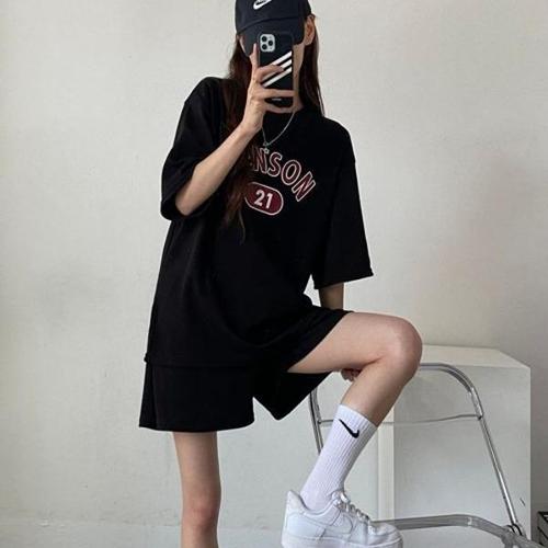 [XBH5IMO5]여성 여름 트레이닝복 반팔 반바지 상하 세트