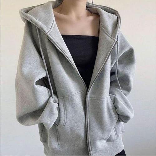 [퍼니메이커]여자 대학생 캐주얼 집업 후드 점퍼 간절기 캠퍼스 룩 봄잠바오버핏후드집업 회색후드티무지후