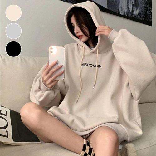 벨라도나 여성 가을 레터링 반집업 오버핏 후드티셔츠 루즈핏