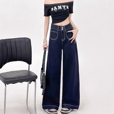 SAHINER 여성 봄가을 청바지 와이드 일자 하이웨스트 날씬해 보이는 세미와이드청바지 ANZ34