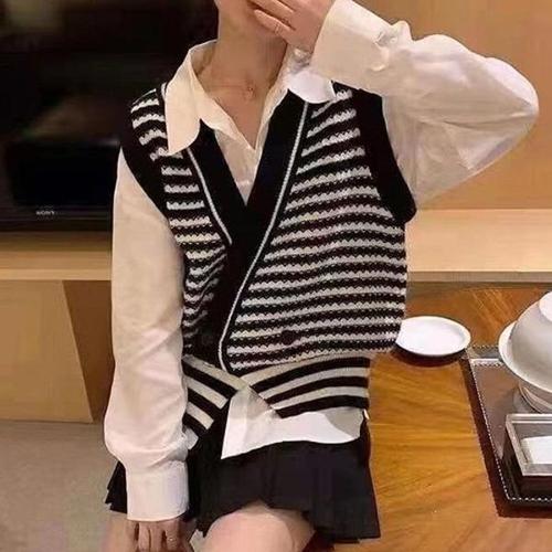 [엄지척]여성 니트 조끼 캐쥬얼 정장 패선 가로 줄무늬 베스트_20360389_667501