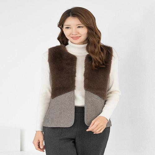 [모슬린]엄마옷 라운드 퍼배색 헤링본 정장 조끼 511FGH060 마담/중년여성/빅사이즈/50대/60대