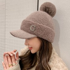 엘마운틴 G로고 방울 니트 챙모자 겨울 여성 방한모자 산책 운동 골프 등산 패션을 겸비한 털모자