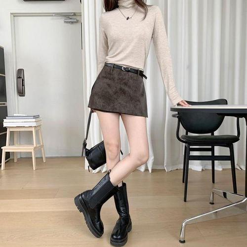 [옷자락]여성 빈티지 워싱 스웨이드 벨트 치마반바지