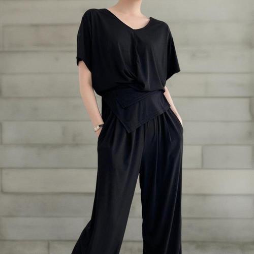 [미라클세븐]여성 쿨 투피스 브이넥 반팔 세트 밴딩 팬츠