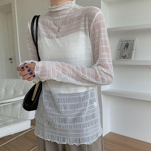 여성 기본 이너 폴라 스판 망사 긴팔 반폴라 티셔츠 [WCEF42F]