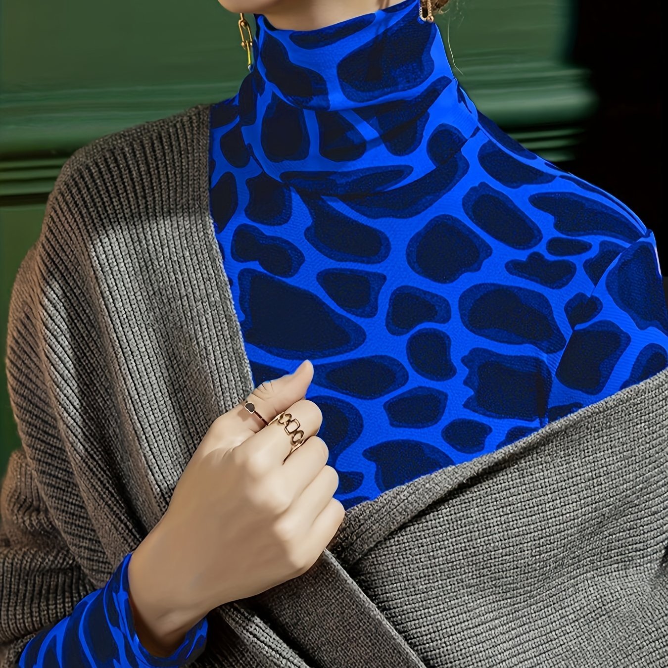 TEMU 올오버 프린트 터틀넥 슬림 티셔츠, 봄 & 가을용 다목적 긴팔 티셔츠, 여성 의류