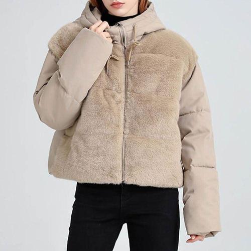 TLB 여성용 투톤 클래식 후드 숏패딩 경량 캐주얼 퀼팅 점퍼