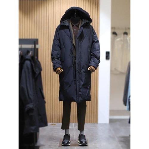 갤러리아_BON 네이비 시베리아 구스다운 더블 페이스 후디 롱 패딩 점퍼
