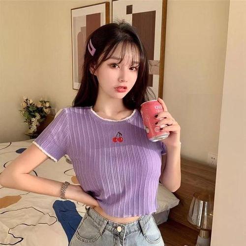 [에이치플러스몰]거림 프릴 무지 기능성 여성 반팔티 여름 크롭티 기본