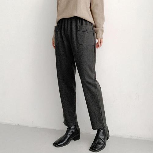 [웬디즈갤러리]레오 모직 터치 배기 팬츠 / 기모 밴딩 겨울바지 TPT128