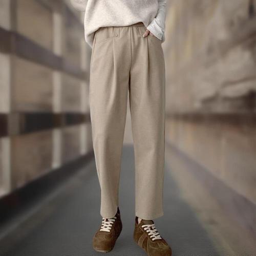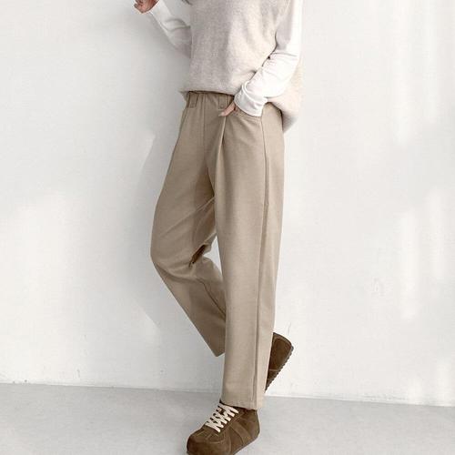 [신상오픈런]여성 겨울 출근용 기모 팬츠 핀턱 배기 바지 밴딩 스타일