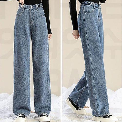가비진 여성용 후끈 따뜻 안감 융털 기모 스판 데님 일자 와이드 청바지 데님팬츠 겨울 바지