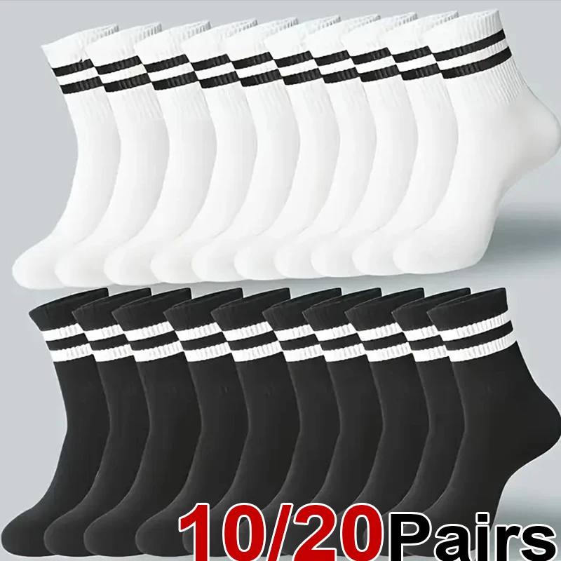 10/20 쌍 남성 여성 줄무늬 라운드 넥 양말 봄 가을 통기성 냄새 방지 땀 흡수 올 시즌 캐주얼 양말