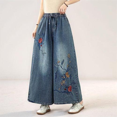[헬리꽁땡]로즈자수밴딩와이드팬츠 청바지 여성가을바지 데님바지