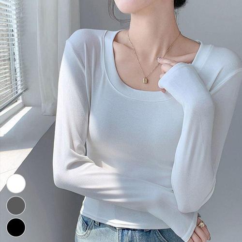 [빠른토끼] 1+1여성 슬림 U넥 긴팔 티셔츠 이너 스판