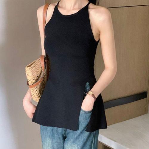 [에이치플러스몰]옆트임 홀터넥 슬림 롱나시 여성 바디핏 레이어드룩