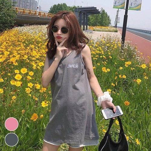 [모노무드]LMO 여자 오버사이즈 룩기장 긴 맥시 데일리룩 소매없음 탱크탑 티탑 롱나시 심플 걸 와이드핏