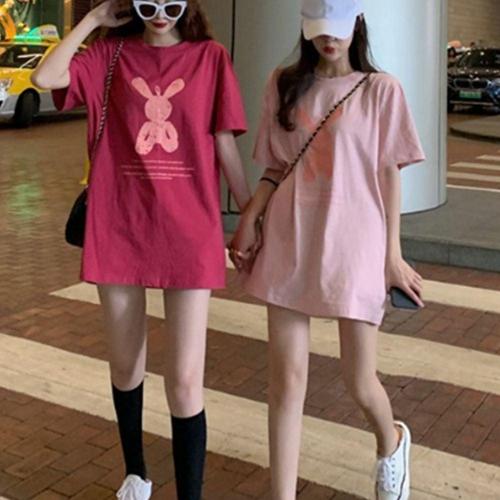 [라일리의류] Rly 여성 연핑크 롱반팔티 여름 여대생 학생 20대