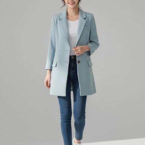 트윈 베이직 하프 롱자켓 UU-W002B긴팔재킷 여성심플 카라 싱글 여자 기본 단추