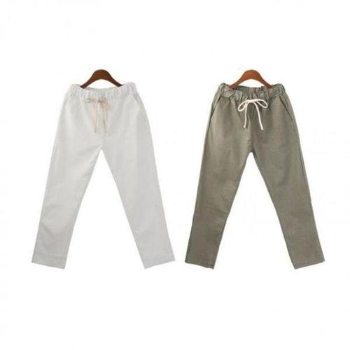 [에이치플러스몰]여자 여성 캐주얼 뒷밴딩 린넨 필수템 마반바지 팬츠