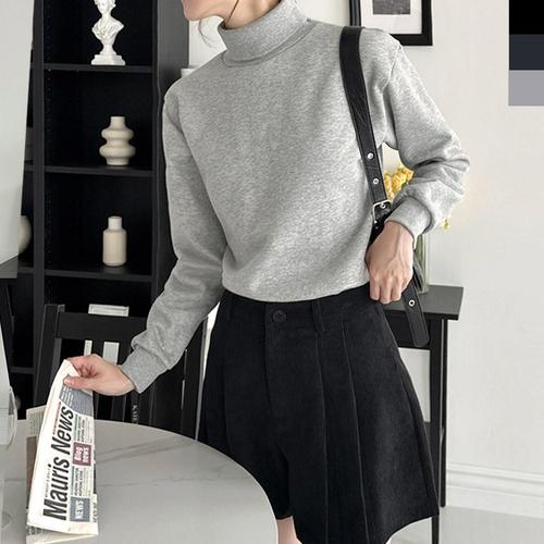 여성 4색 코튼 슬림 기모 목 폴라티셔츠