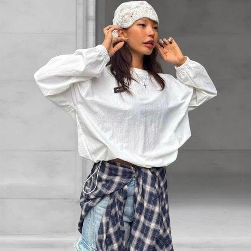 네오플레인 여성 나일론 라그랑 맨투맨 스트링 바람막이 트레이닝복 오버핏