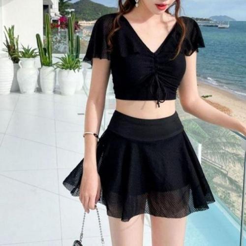 여성 비치웨어 프릴 레이스 쓰리피스 비키니 수영복[32154198]