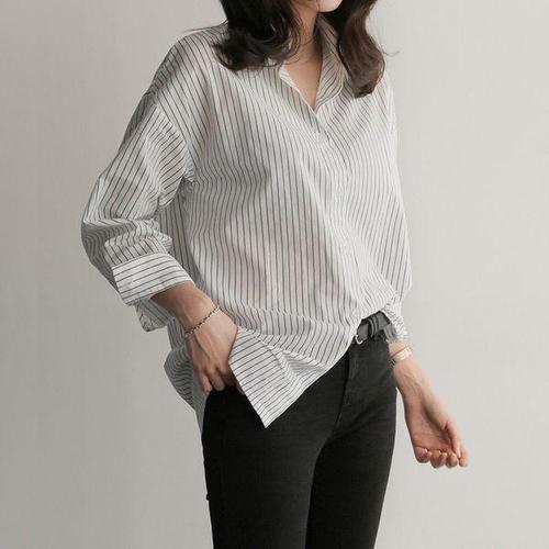 여성 캐주얼 스트라이프 루즈빗 블라우스 셔츠