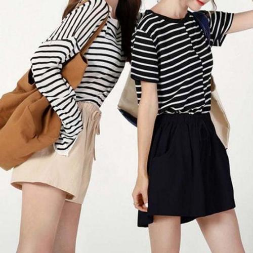 [유야]여성 면 무지 날개 배색 반팔티 와이드팬츠 세트 SPST0397 여름