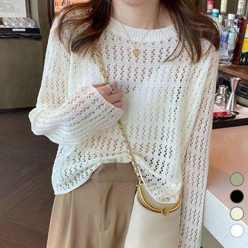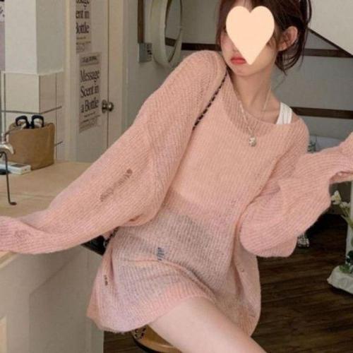 [에이치플러스몰]여름 인기 루즈핏 긴팔 그물 감성 니트 LM 0057 여름