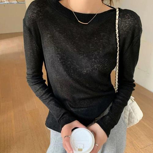 여름 얇은 긴팔 니트 티셔츠 여성용 단색 패션 티셔츠 WFLOOV3