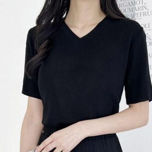 니트 여름 쿨 썸머 브이넥 셔츠 여자 반팔티 WFL64GD