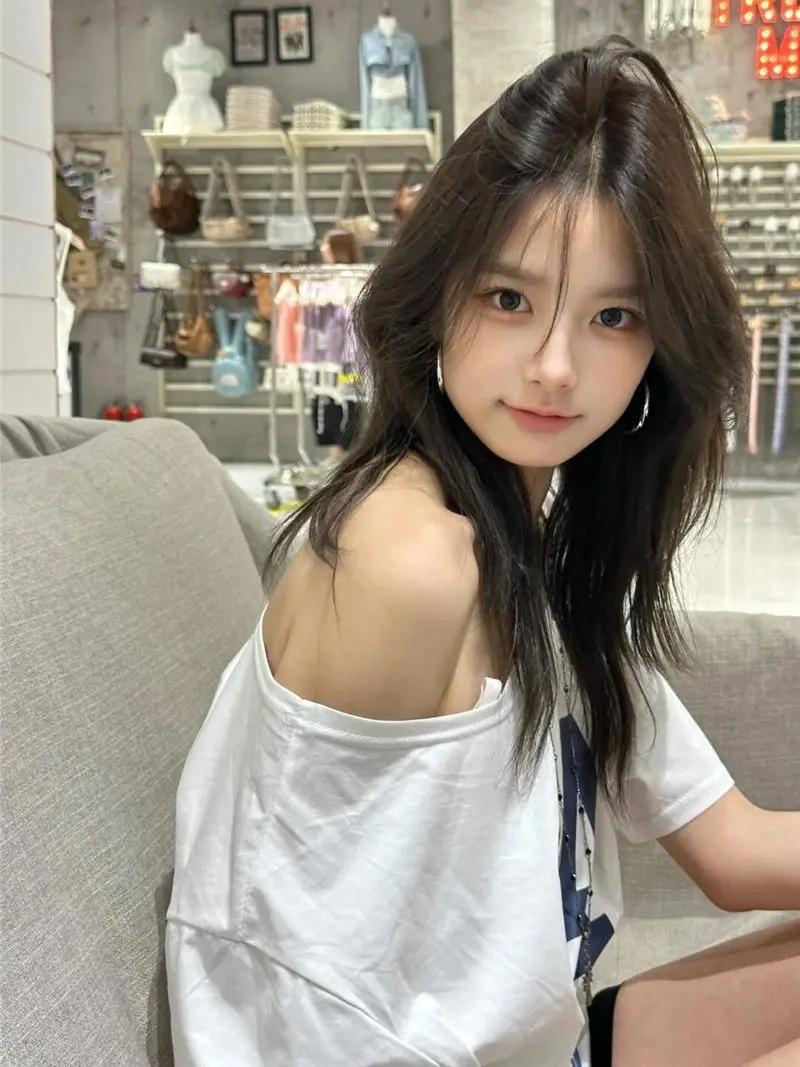 레트로 아메리칸 반팔 티셔츠 여성 여름 디자인 스파이시 걸 슬림핏 어깨 노출 크리에이티브 패턴 한국 스타일 면 혼방