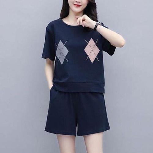 [에이치플러스몰]여성 마름모 여름 트레이닝 세트 반팔 반바지 홈웨어