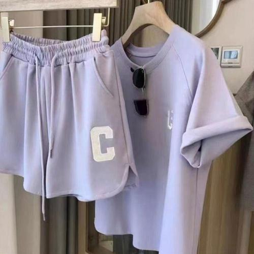 여성 여름 데일리 캐주얼 트레이닝 반팔 반바지 세트 (WFHXDOU)