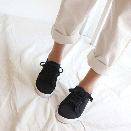 [에이치플러스몰]예쁜 블랙 운동화 여자 스니커즈 학생 발편한 슬립온