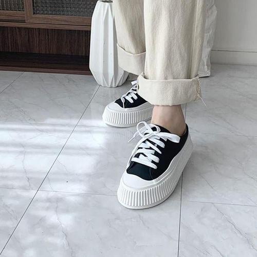 [에이치플러스몰]여성 천스니커즈 뮬슬립온 운동화 나들이 예쁜 신발