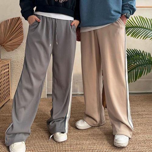 [옷자락]여자 남자 커플츄리닝 배색 트랙팬츠 밴딩 와이드 바지