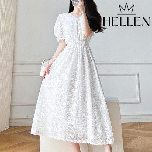 [헬렌]헬렌 펀칭 퍼프 반소매 레이스 원피스 니베아레이스OP