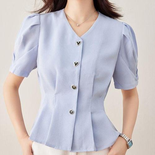 [무드수]솔리드컬러 러브버튼 허리쏙 릴리 블라우스