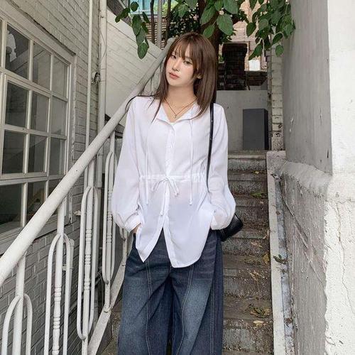 [허리잘록] 모던 페미닌 허리끈 스트랩 블라우스 카라 셔츠