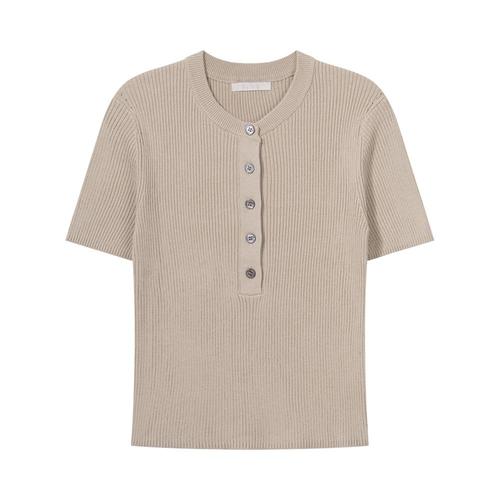 여자 헨리넥 라운드 솔리드 골지 심플 반팔 니트 SGW-KNH-Q075