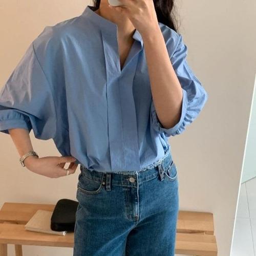 [다잇템][다잇템] 여자 통소매 박시핏 잔주름 헨리넥 오픈 반소매 블라우스_20724531_588872