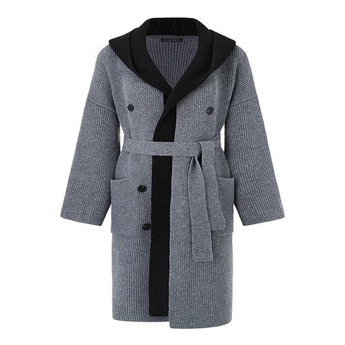 로브 롱 꽈배기 니트 후드 가디건 그레이 (KYR-WFG0LWO)