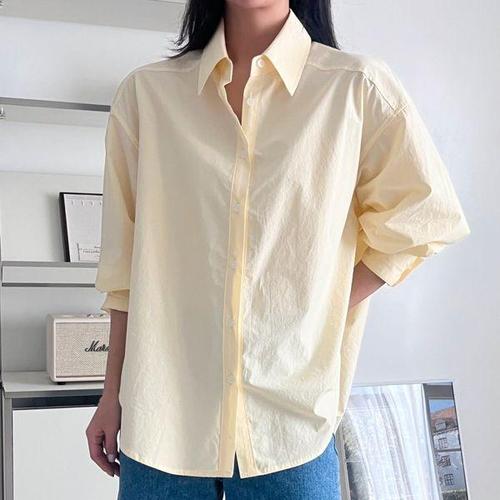 [셀러허브_여성트랜드패션]여자 봄남방 박시핏 엷은 힙커버 카라넥 셔츠