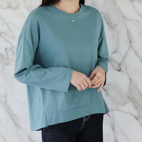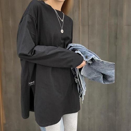 |CCT9F5B|여성 루즈핏 긴팔티 라운드넥 옆트임 힙커버 기본 티셔츠