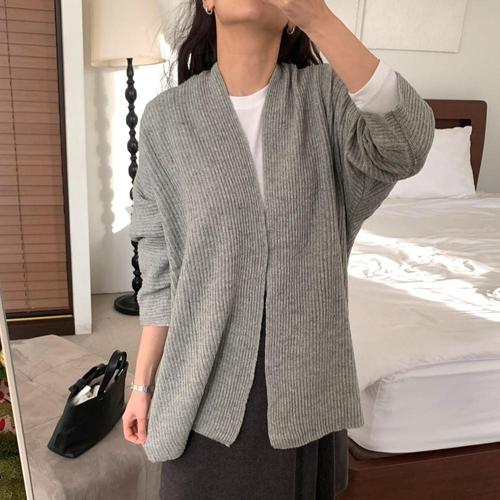 |CSJ6C8D|여성 골지 울 니트 벨트 루즈핏 힙커버 숄 가디건