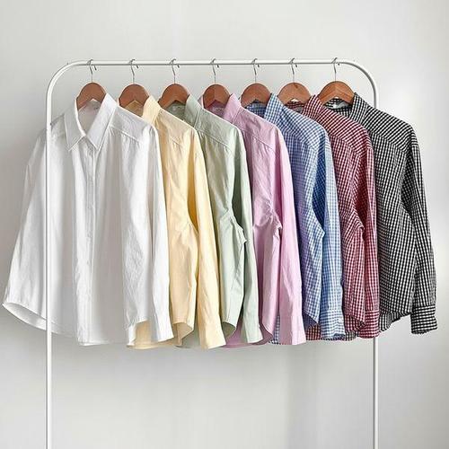 [셀러허브_여성트랜드패션]여자 파스텔 봄남방 카라넥 코튼 힙커버 셔츠
