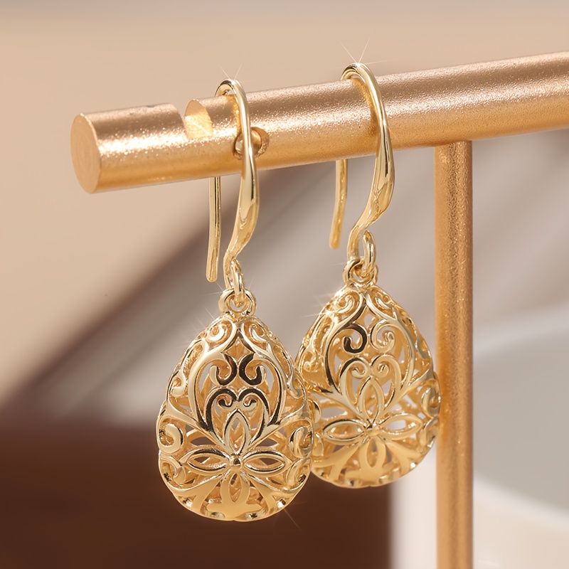 TEMU Fonect 여성용 우아한 눈물방울 필리그리 이어링 - 골드 톤 웨딩 주얼리, 신부 들러리 선물, 일상 및 포멀 이벤트 - 사계절 착용을 위한 내구성 있는 구리 구조 - 결혼식, 파티, 기념일에 적합 - 럭셔리 브라이덜 액세서리